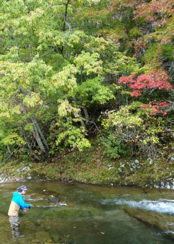 夏と秋の狭間に、北海道中央部の深山を流れる川に入った。