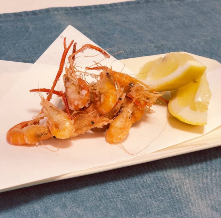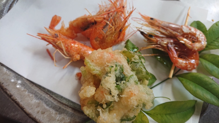 夕涼みがてらビール片手に手長エビの素揚げをパクッ。