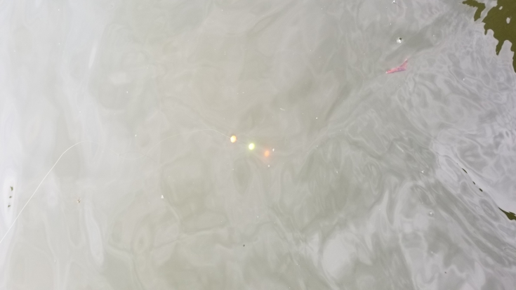 ウキがもぞもぞしだしたらエビがエサをつかんでいます。