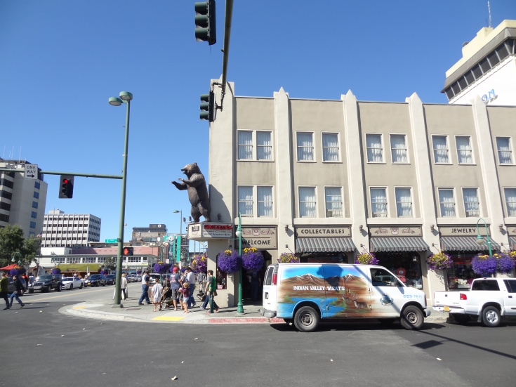 釣り場へ出発するまで、まだ時間がある。という訳で、ふたたびアンカレッジを探索。同州最大の街といっても、ビルなどの高い建物は中心部に少しばかりある程度で都会的な印象は薄いが、ここには古き良き時代のアメリカらしい雰囲気と賑わいがある。