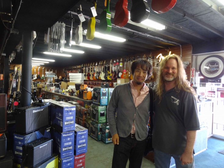 011・路地裏の楽器屋でギターを弾くと、地元の人とすぐに意気投合。音楽に国境はないね。