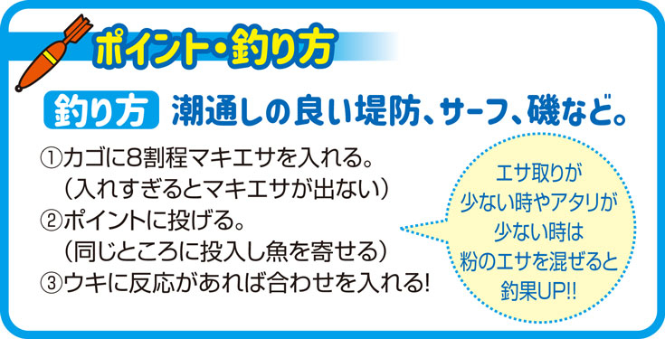 【まき餌】(カゴに入れて魚を寄せる餌)
