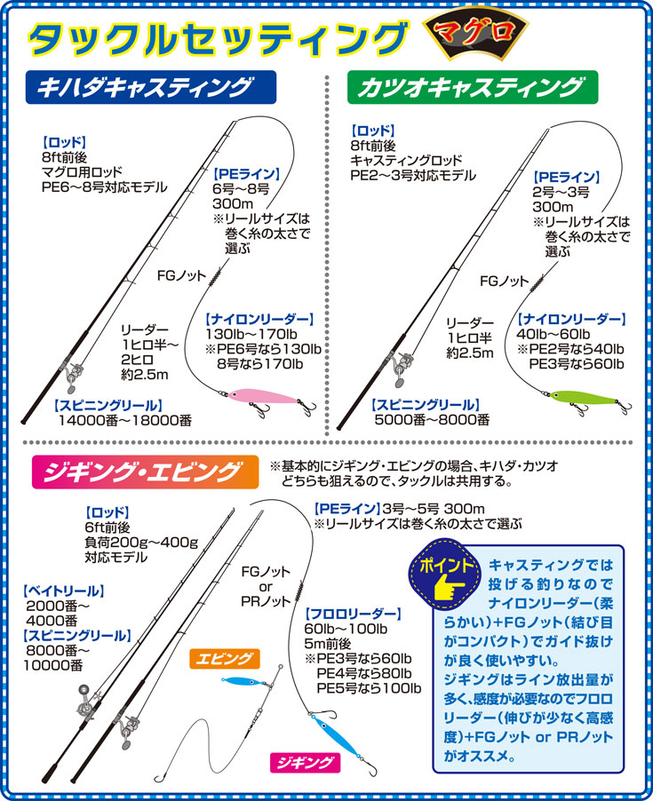 釣り方は表層のタナを狙うキャスティングと水深50~150mを狙うジギング・エビングの2パターンがあります。