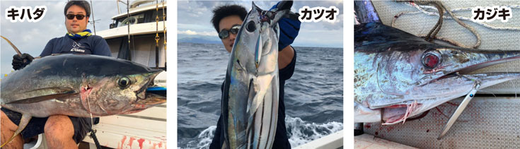 キハダ狙いの黒潮海域では他にカツオやカジキなどが狙えます。