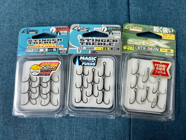 このローリングベイトにはST-46が標準装備されていて、最初のうちはそのままでいいのですが、何度か使用するとやはり鈎先のなまりが気になり始めます。ここでフックチェンジ!交換するのはさらに刺さりをよくするための工夫=マジックフッ素加工を施したST-36MFやショートシャンク化しより掛けることへの工夫を凝らしたSTY-35MFなど「より掛かりやすくする工夫」ではりを選びます。使えばすぐに実感しますがやはりこの釣りにはフックのチューニングは重要でありとても楽しいものになります。はりを変えサイズを選びタチウオが掛かるか掛からないか?というシビアさも是非楽しんでいただきたいなと?面白いですよ!
