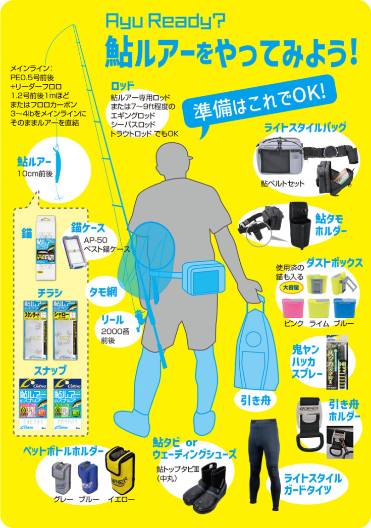 鮎のルアー釣りは普段のタックル+αのライトなスタイルで狙えるので、鮎釣り入門には最適です。
