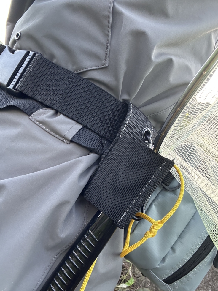 タモや引き船はベルトにセットすると収まりが良いのですが、この鮎渓流ライトスタイルバッグの鮎ベルトセットは、バッグとしての機能はもちろん、タモホルダーや引き船ホルダーも付いているので、これさえあれば収納関係はばっちり。
