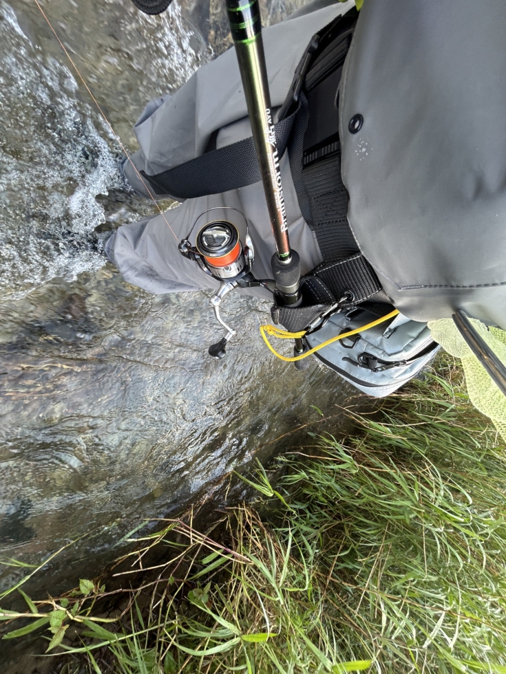 これはひざ下ぐらいまでの水に入ること前提としたスタイルなので、もっと深いところに入りたいという方は、ちゃんとした鮎タイツをおすすめします。