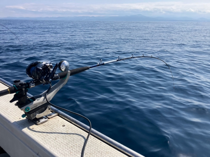 これは3段引きとも呼ばれ、仮に水深100m超で食ったら、まずアワセた直後に、続いて80mあたりまで来たときと、残り20~30mに来たときに激しく暴れます。掛かったのが本命か外道かを判別する材料にもなるので、覚えておくとこの釣りが一層楽しくなります。