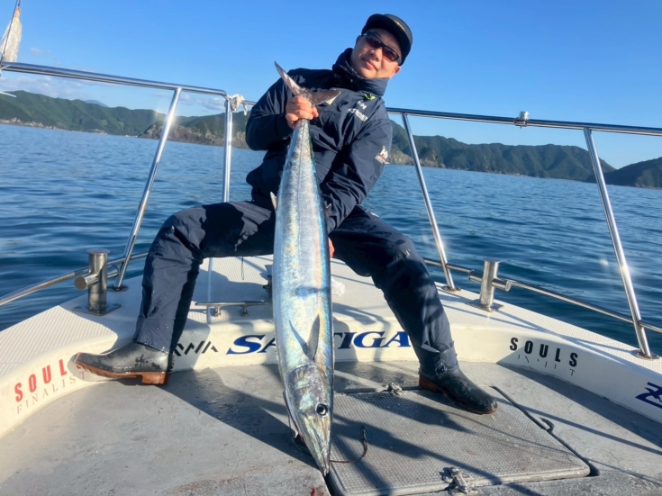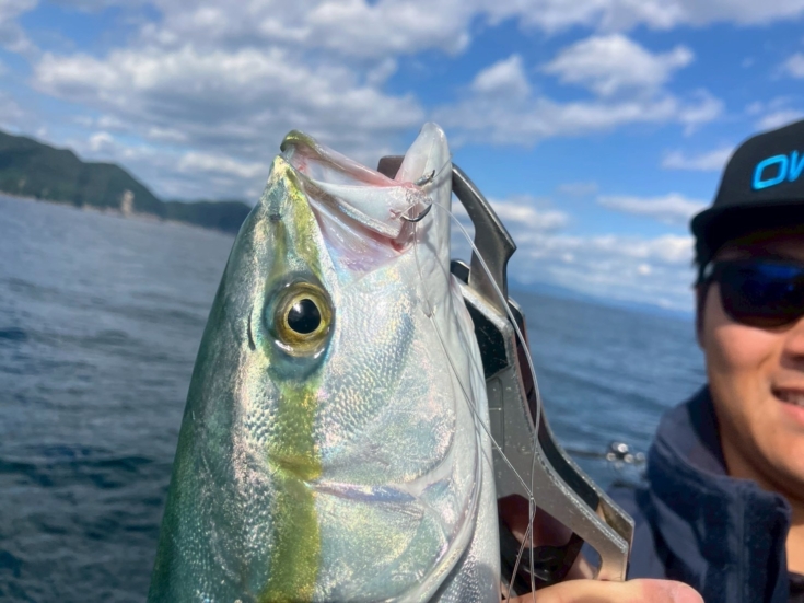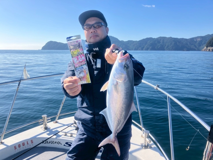 青物は近海のスプリンターで力強いファイトが魅力。ベイトの群れに付いて回る習性を持ち、エサを見つける能力や遊泳速度も速いので、いれば勝負が早いのもこの魚の特徴。また、尾鷲沖ではシオやカンパチも狙え、特に秋が好シーズン。2kg以下のシオサイズが中心ですが、ときに数kg以上のカンパチが喰うことがあり、スリリングなファイトを楽しませてくれます。