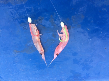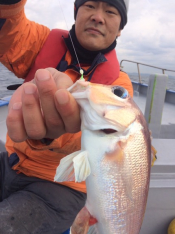 この日は時化の合間だったので、曇天のやや濁り潮だったので、朝のうちは夜光アピールのカラーアマダイ2本。