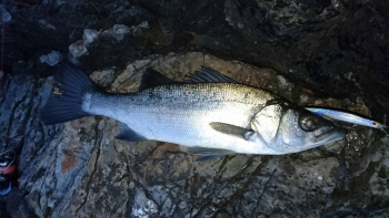 あわてて渋谷君を見ると、巧みなロッドワークでやり取りし、釣り上げたのはヒラスズキでした。