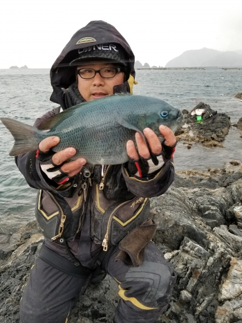 渋谷君にもイサギはもちろんのこと、40cmを超える口太グレも掛かりました。