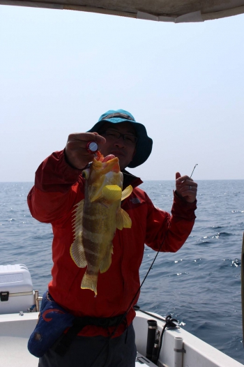 タイがまとめて釣れたので、ワームチェンジしてボトムをネチネチやると、青ハタ、アヤメカサゴ、アカハタなどがポロポロと釣れました。