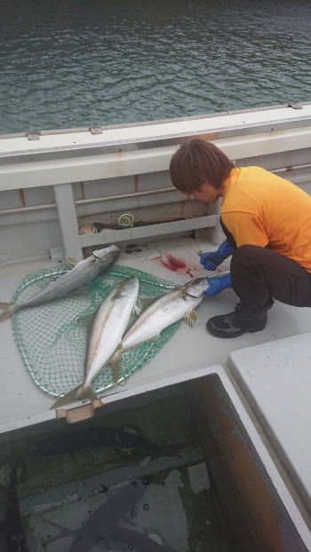 画像は音速で魚を処理していくターボ船長☆これで魚も美味しく召し上がれます。