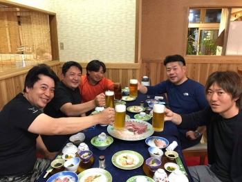 シーサイドホテル藤蔵さんにお世話になりました。お風呂も大きく綺麗なホテルでした。そして、恒例の乾杯写真☆一杯笑いました。