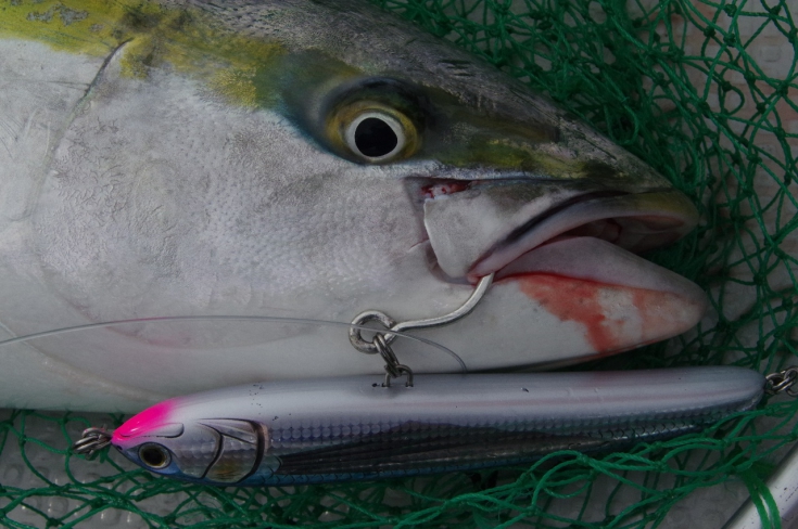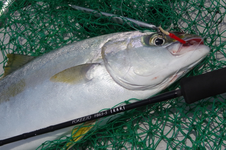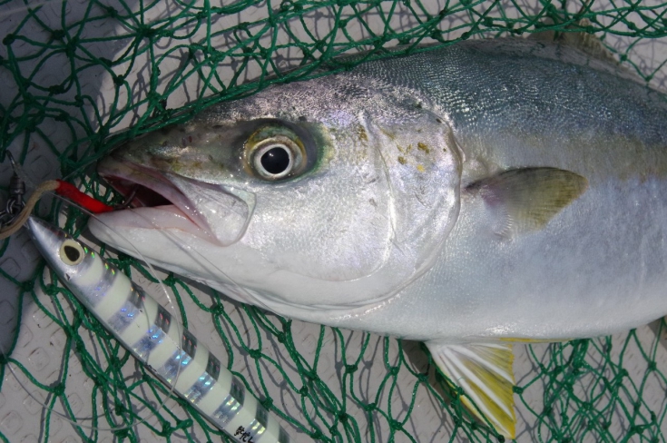 しばし心地よい抵抗をみせネットインしたのはハマチ。