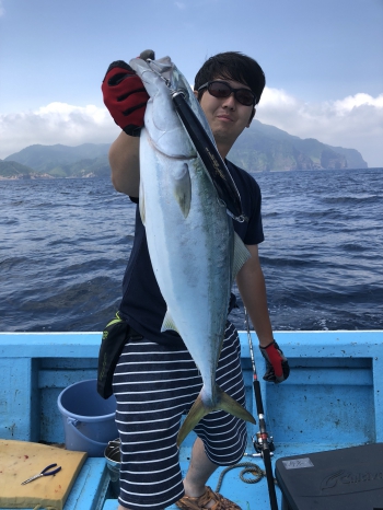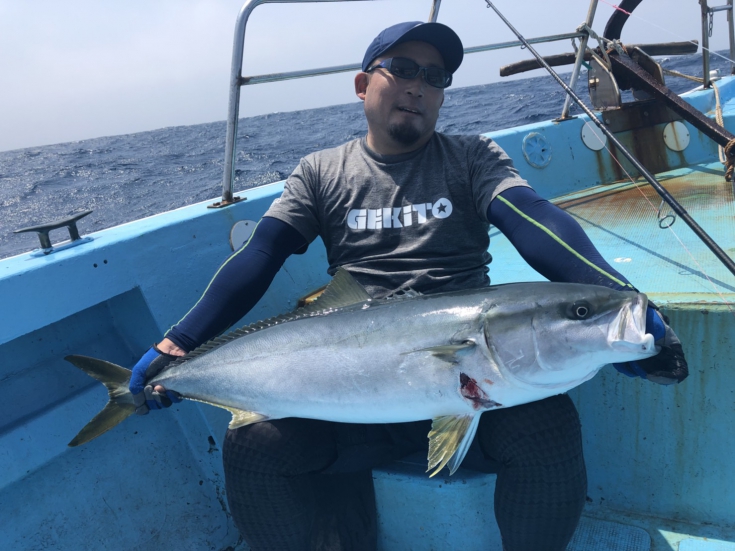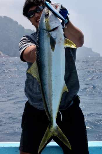 強烈な引きで楽しましてくれたのは、90cmクラスのヒラマサ。