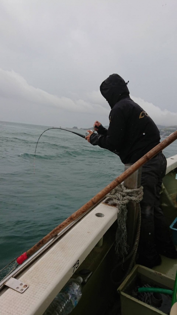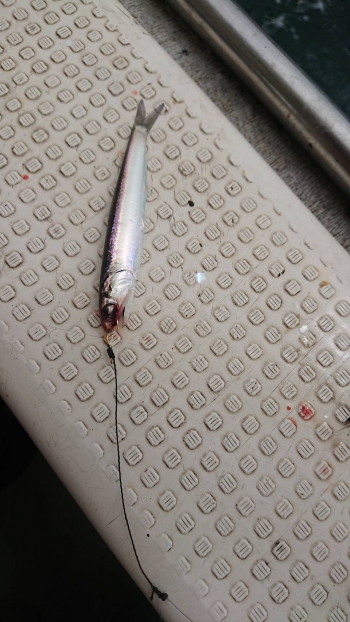 ポイントは40m~30m位のカケアガリで潮が当たる面の頂上付近で、アジが暴れだします。