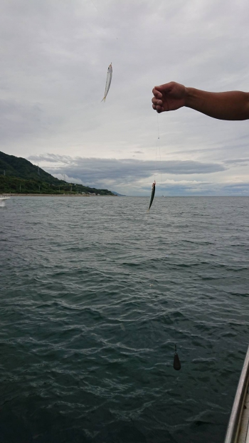 30号のオモリを装着し第1投、すぐさま竿先がブルブルと反応、上げて見ると全てイワシ・・・