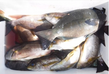 そしてこれを機に一時は同サイズの尾長グレが連発し、それを横目に見ていた渋谷さんもルアー釣りからフカセ釣りに変更し、二人で数釣りを楽しみました。