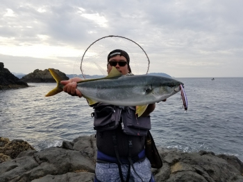 ここでも初っ端から渋谷さんがルアーでメジロをヒットさせ、豪快にロッドを曲げていました。渋谷さんと同行すると必ずルアーで大物を仕留めるため、上物オンリーで望む私にとっては本当に羨ましい限りです。