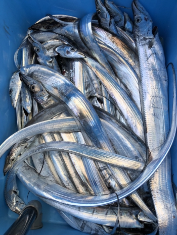 出船前の不安とは裏腹に1投目から太刀魚のバイトがあり、船中でも次々とあがります。