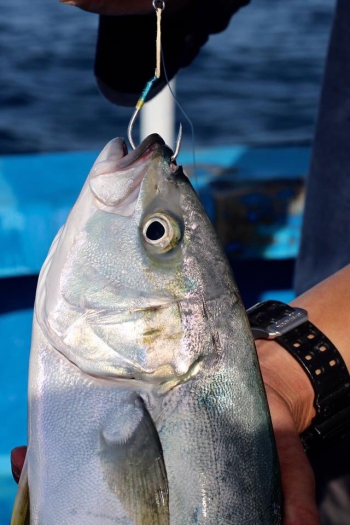 これに替えるとどかっ!とあっさり狙ったとおりにヒラマサのバイト。