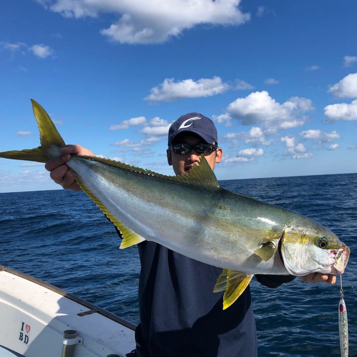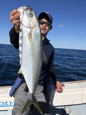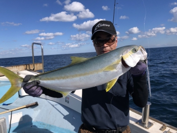 14時半潮止まりなので、そろそろ潮の変化があるなと思っていると同僚の宇治宮にヒラマサがヒット!