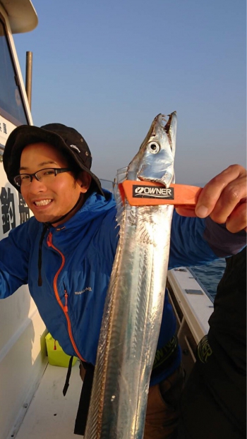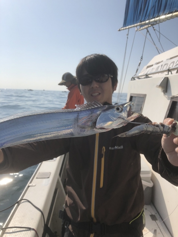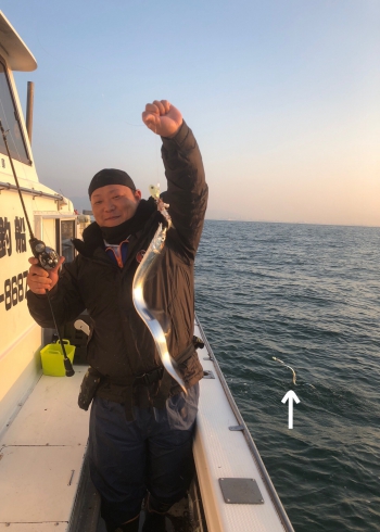 その後ろで釣りをしていたスタッフ大東の太刀魚との奇跡のツーショットでした笑