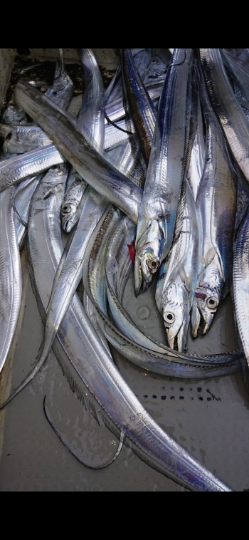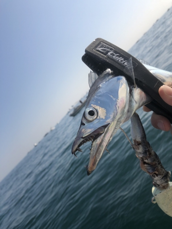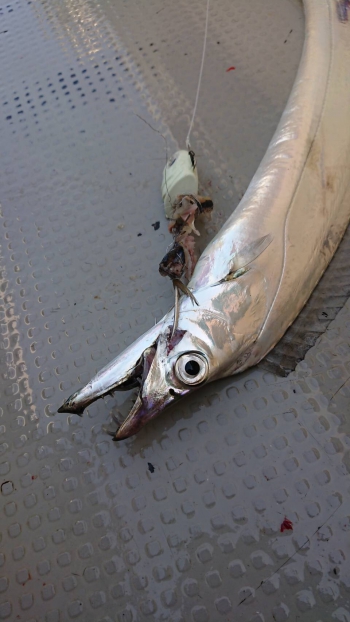 活性の下がった太刀魚に対してはエサのイワシの頭をカットすることで全体のシルエットを小さくし攻略。