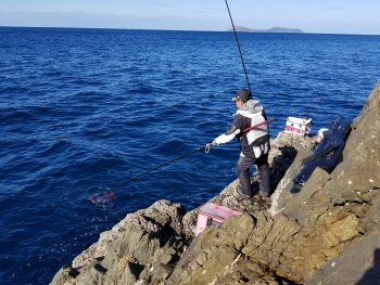 二日目は、予想通り南西の風が吹き、大宝の磯は船止めとなり、荒川エリアの磯で竿を出すことにしました。