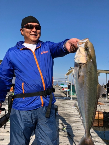 この青物放流タイムでは放流された青物に触発されるようにすでにイケスの中にいた青物の活性も同時に上がり、活発にエサを追うようになるのでチャンスタイムです。
