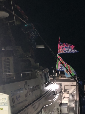新年1回目の出船ということもあり、船には大漁旗が掲げられていました。