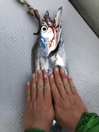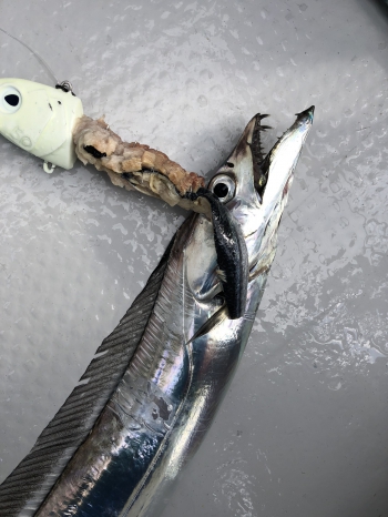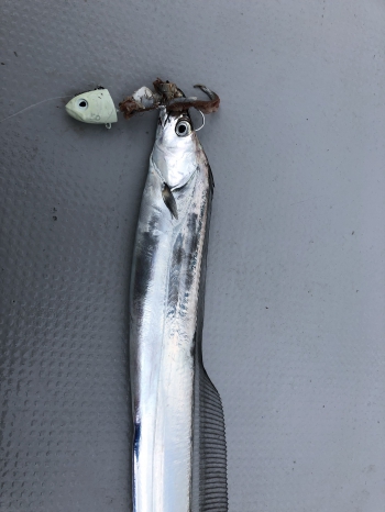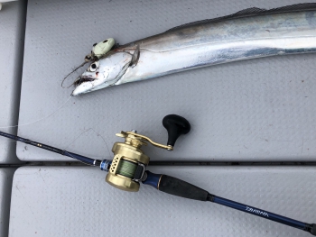 水圧やラインの変化などから50m、70m、100mのところにタチウオはいるような感じでしたが、そこで数釣りをしていては今回の目的からは外れるので、スルー。