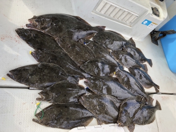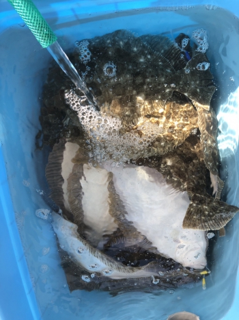 さてこの後の状況はというと時合後もポツポツヒットし、終わってみれば船中60センチ頭に20枚のヒラメをキャッチ。