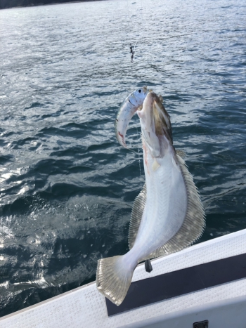 トモのお客さんは60センチ級の見事なヒラメでした。