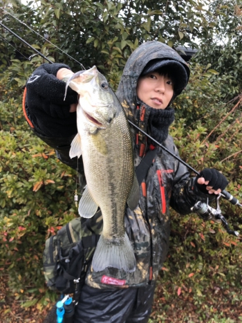 その後、巻きだけでなく、リアクションの釣りでもサイズアップを狙いましたが、アタリは得られませんでした。スタッフの奥野が終了間際にブルーギルを1匹追加して納竿しました。