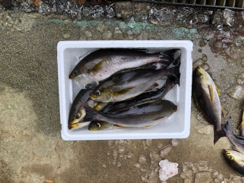 が、潮どまりで食いが止まったタイミングで雨も降り出したため、早上がりでお昼までで納竿となりました。