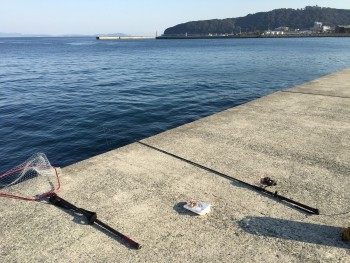 大波止の外側には投げ釣師の方が3名いたので、一番奥で竿を出すことにしました。