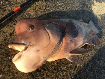 釣り始めて10分ぐらいすると、敷石に沿って泳ぐコブダイの姿が見えましたが、何かが気に食わなかったのかすぐに姿を消しました。