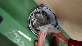 まずは、近隣の港で餌となる活きイワシを購入。(船代とは別に、使う分だけ購入)当日は15匹を購入し、いざポイントへ。
