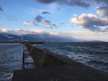 6時半に出船し、5分かからないうちに港の入り口にある川之江一文字へ渡りました。
