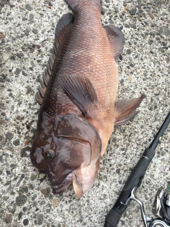 ヒットしたコブダイは勢いよく先端から内側へ回りましたが、そこからは沖へ向いて走ってくれたので、ゆっくりとファイトを楽しみながらランディング。