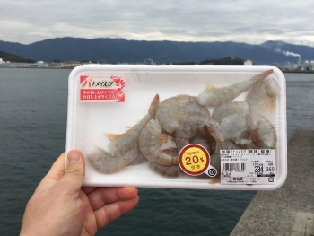 今回は短時間の釣りなので、エサはバナメイエビのみ。