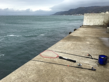 夜中から吹き荒れていた風は7時には多少弛む予報でしたが、7時を過ぎても風は一向に収まる気配もなく、アタリもないので、9時前にポイントを白灯台に移動することに。