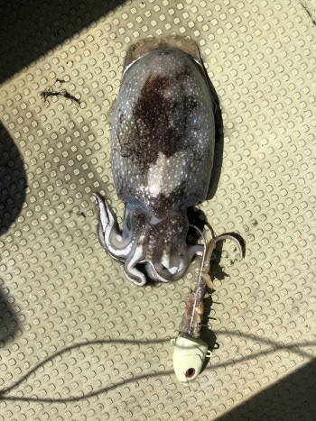 モゾモゾとタイラバを巻いている時のスルメイカがちょっかいを出してくるような当たりがあり、フッキングすると・・・