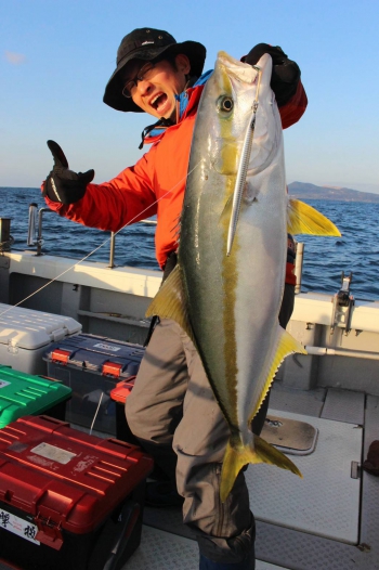まずは、水深80~70m、港周辺の漁礁でジギングです。船長は反応を見て、直撃で船を操船されるので、投入の合図で即投入します!