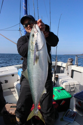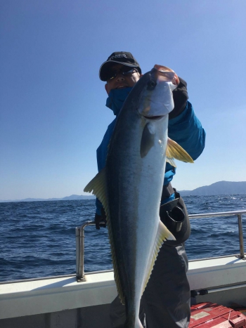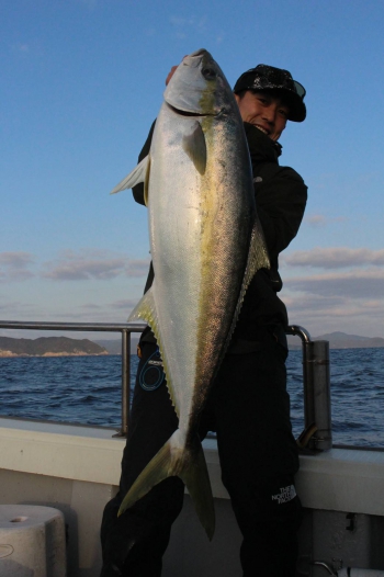 このタイミングで10キロ近いヒラマサ、ブリもキャッチ。
