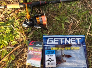ヒットルアーはジャスターホッグ2.3のダウンショットリグ。